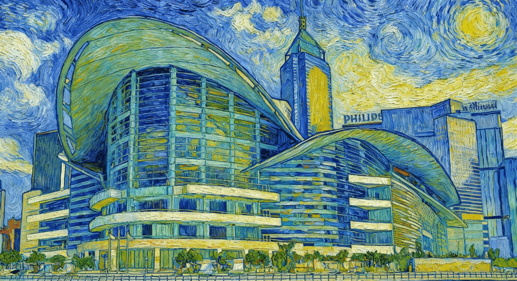- 上傳一棟建築的圖片,提示詞「轉換成梵高風格」,即可將建築圖化身為印象派油畫。
